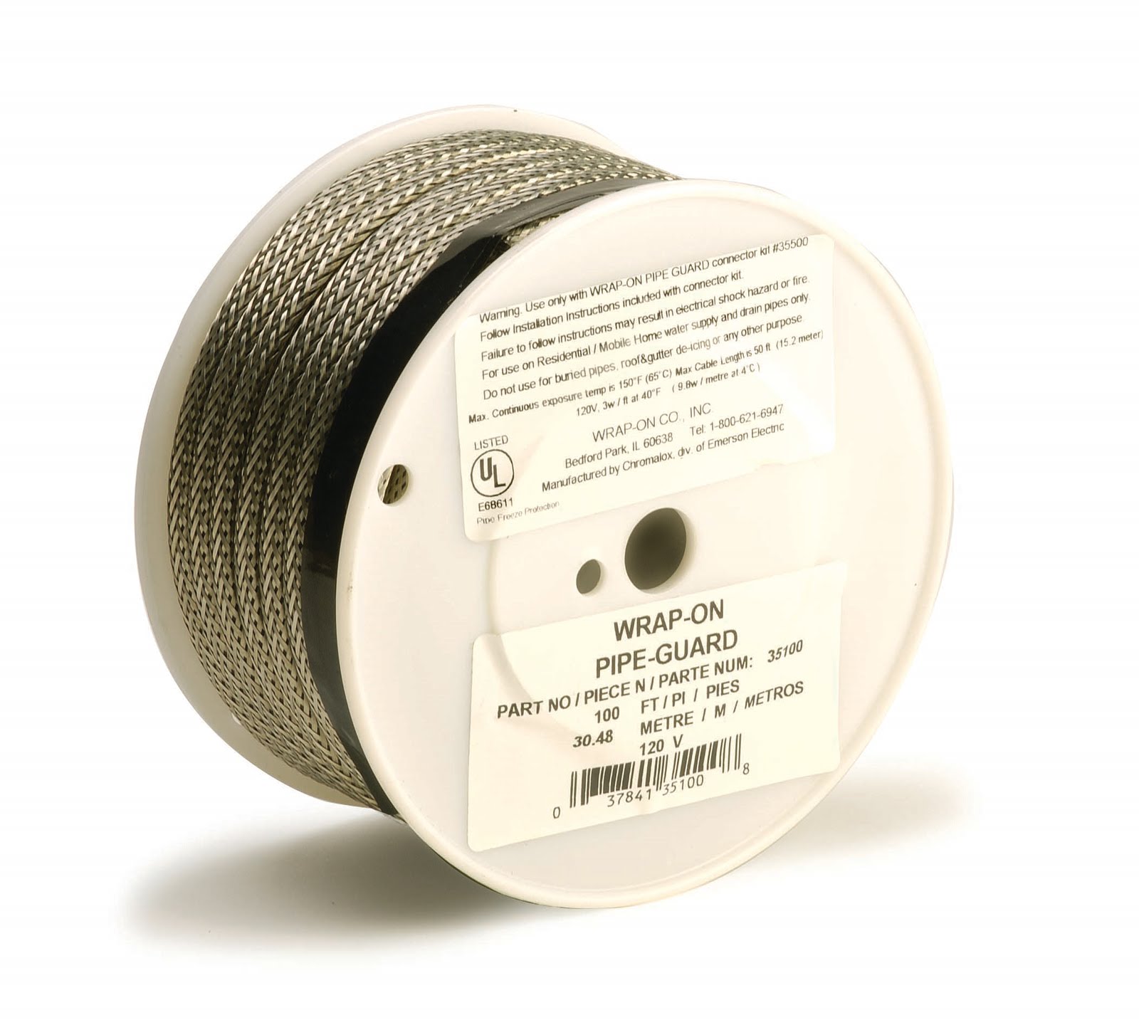 Pipe-Guard cable gives you the flexibility to handle any installation requiring up to 50 feet of cable. Simply cut the length of cable needed from our handy reel, add the Pipe-Guard plug and lighted end cap and install. The self-regulating design reacts to changes in temperature along the entire length of the cable, generating just the right amount of heat needed in each spot.